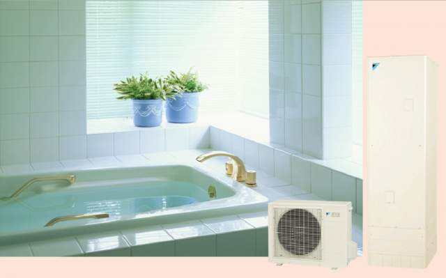 大気中の熱を利用してお湯を沸かすエコキュート。